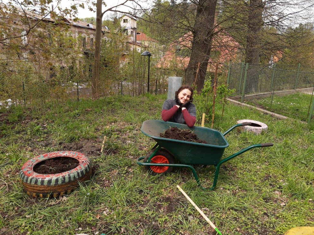 To je hlína! A ta nejlepší se vyrábí na kompostu. Než budeme mít svůj vlastní, postará se o kompost pan starosta. Míchá ho v kompostárně ze všeho, co se mu tam sejde ze široka daleka … Ze slupek, trávy, listí i z vysloužilých vánočních stromečků. Z celé Krásné Lípy. Za Krásnou Lípu úrodnější!