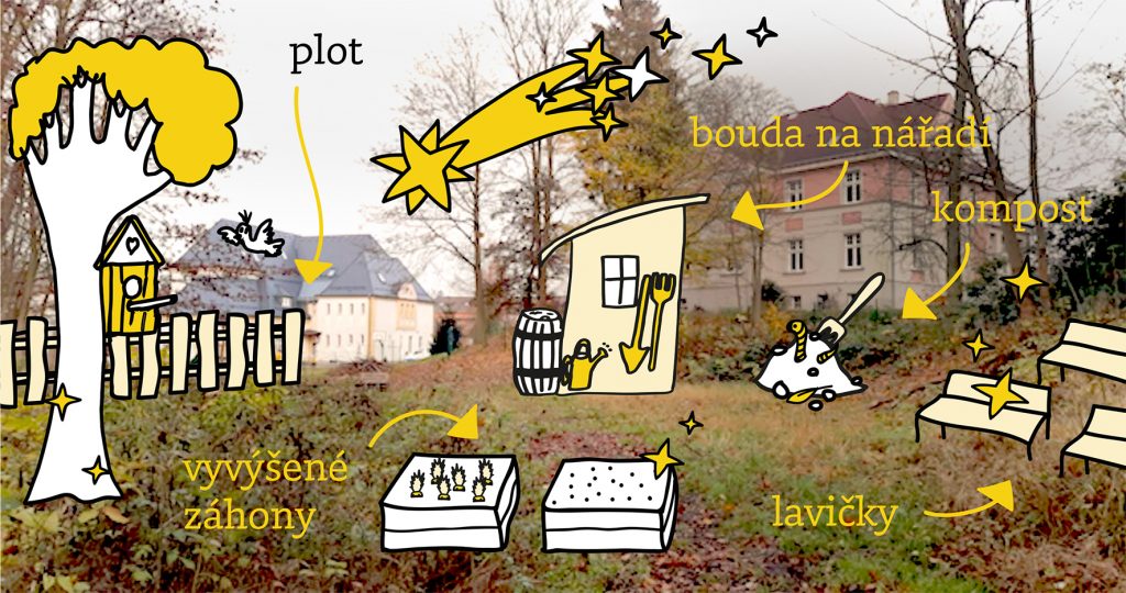 Pojďte s námi zasadit a vypěstovat otevřenou zahradu, na které se bude dařit rostlinám i blízkým vztahům! Chceme se tu naučit pěstovat skutečné jídlo i inspirativní přátelství.Designérka Jana Vařechová Holoubková se už delší dobu zajímá o to, jak se žije dětem v dětských domovech. Často se setkává s tím, že pokud jde o materiální zajištění, děti nic nepostrádají. To, co jim zpravidla chybí, je intenzivnější kontakt s okolním světem a s místní komunitou. Tohle „odtržení“ způsobuje navíc nedostatečný zájem o hostitelskou péči, díky které by mohly děti trávit alespoň víkendy na návštěvě v přirozeném prostředí spřátelené rodiny. S tím souvisí i další zkušenost, kterou Jana časem udělala se zahradami kolem dětských domovů: Jejich možnosti nebývají využité, prostor většinou slouží spíše jako hřiště a klasické zahradě, na níž se dá pěstovat, kompostovat a pozorovat přírodu, se podobá minimálně. Společné zahradničení má přitom velký socializační i terapeutický potenciál. Ze všech těchto poznatků vznikl nápad pokusit se v blízkém sousedství dětského domova založit komunitní zahradu, kde by se při společné práci mohly potkat děti s dospělými „zahradníky“ z místní komunity v Krásné Lípě a okolí. Projekt se všech sil podporuje také ředitelka dětského domova Sofie Wernerová, která má podobnou zkušenost jako Jana a chuť začít „měnit poměry“. Chce vybudovat otevřený domov a zahradu, která bude mít terapeutický přesah a pomůže dětem léčit traumata, s nimiž do domova přicházejí.